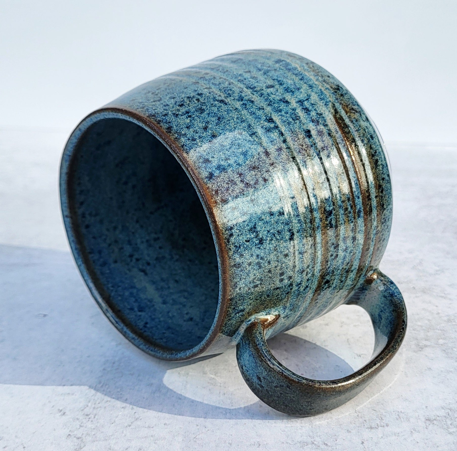 14 oz Mug, Glossy, blue/green glaze. Food safe, dishwasher, microwave safe.